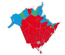 | Франкоговорящее большинство, англоговорящих < 33% Франкоговорящее большинство, англоговорящих> 33% Англоговорящее большинство, франкоговорящих < 33% Англоговорящее большинство, франкоговорящих > 33% Нет данных |