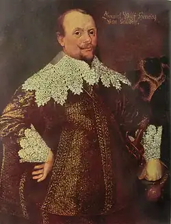Во время Тридцатилетней войны Нюрбург, принадлежавший сторонникам Католической лиги, был захвачен и разграблен шведскими войсками. Армией протестантов командовал генерал Хайнрих фон Баудиссин из известного силезского рода фон Баудиссин. Это произошло в 1633 году. Лишь 1674 году, через 16 лет замок завершения войны, императорский гарнизон вновь смог занять крепость.