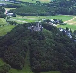 Замок расположен на скалистом холме на высоте 676,5 метров над уровнем моря. Основание комплекса служит конус их вулканических пород. У южного подножия холма находится северная петля знаменитой гоночной трассы Нюрбургринг.
