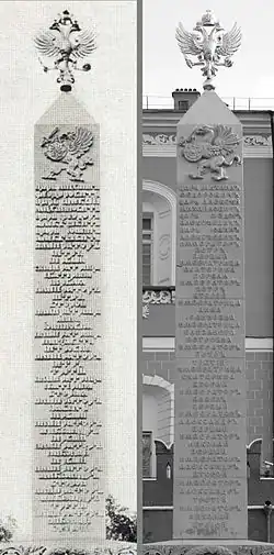 Основание обелиска в 1914 году и после реконструкции 2013-го