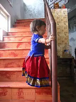 Девочки в Южной Индии часто носят патту-павадай или ланга-давани во время традиционных торжественных церемоний.