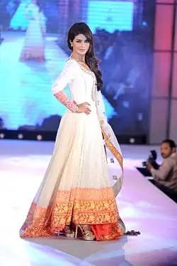 Шальвар-камиз — традиционная одежда женщин Пенджаба, Харьяны, Химачал-Прадеша и Кашмира[26], ставший наиболее популярным платьем для женщин. Шальвар-камиз состоит из широких брюк (шальвар), который сужен в районе лодыжек и туники (камиз)[26]. Его часто неверно называют «Пенджабский костюм» или просто «шальвар» на севере и «чуридар» на юге страны[27]. Женщины в большинстве случаев носят вместе с шальвар-камизом дупатту или одани (odani), чтобы покрывать голову или плечи[26]. Покрывание головы и плеч в Индии было введено мусульманами и происходит от Исламской эпохи и старо-персидской культуры. Такое явление обычно для Пакистана и Афганистана. Материал для дюпатты обычно зависит от костюма и, как правило, это хлопок, жоржет, шёлк и шифон. Это платье носит почти каждая девочка-подросток вместо западной одежды. Шальвар-камиз наиболее привычен для северо-западной части Индии. Многие актрисы носят шальвар-камиз в фильмах Болливуда.