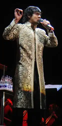 Шервани — это длинный пиджак, который застёгивается пуговицами. Его длина обычно доходит до колен, но иногда может достичь икр. Этот пиджак имеет воротник Неру[36] , который не свёрнут, как обычный. Шервани носят с обтягивающими штанами или брюками, называемые «чуридар». Чуридар — это брюки, которые свободны в районе бёдер, но в районе лодыжек являются уже обтягивающими. Шервани обычно надевают женихи на свадебную церемонию, при этом он обычно молочного, золотого цветов и цвета светлой слоновой кости, а также может иметь золотистую или серебристую вышивку. Иногда с шервани носят шарф.