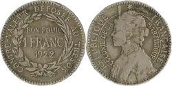 Подобные металлические боны, содержавшие надпись об обеспечении депозитами казначейства, были выпущены в 1922 году на Мартинике[17].