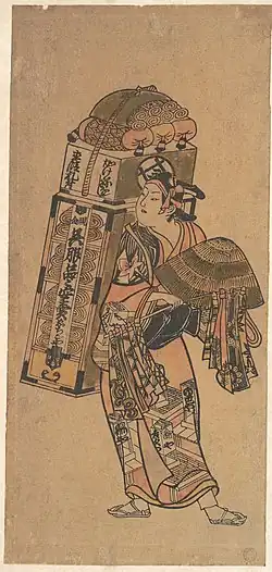 Многие из его произведений изображают людей, что продают вещи. Любил изображать романтические сцены. Известными работами являются «Торговец веерами», «Дайкоку и Соки играют в шахматы», «Актер Савамура Содзюро», «Куртизанка, что ми фонаря», «Женщина, что употребляет саке».