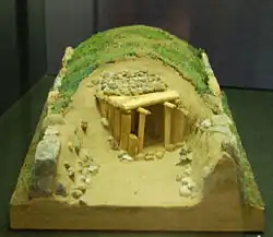 - памятник 2 — курган диаметром около 20 метров, в центре которого находятся остатки коридорной гробницы: вертикальные камни и поперечная балка.