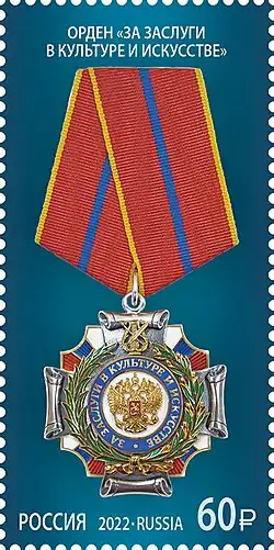 - ↑ Указ об учреждении ордена «За заслуги в культуре и искусстве» и медали «За труды в культуре и искусстве» // Президент России. Дата обращения: 9 августа 2021. Архивировано 9 августа 2021 года.