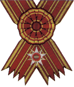 Лента ордена красного цвета с жёлтыми полосками, количество и толщина которых зависит от класса ордена.