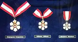 Знак Компаньона и Офицера ордена носится на шейной ленте мужчинами и на специальном банте женщинами. Знаки Членов ордена носятся на ленте на груди мужчинами и на банте женщинами.