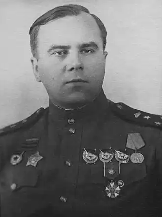 - три ордена Красного Знамени (30.01.1943; 17.08.1943; 20.05.1944)[6][7][8];