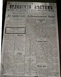 В феврале 1918 года, с окончательным установлением в Орле советской власти, газета «Орловский вестник» была надолго закрыта. 13 октября 1919 года в Орёл вступили корниловские части белогвардейской Добровольческой армии. В качестве официального печатного органа Добровольческой армии был выбран «Орловский вестник».