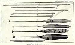 Разновидности отпорных крюков и весел, Аляска, ок. 1800. Хорошо видна эволюция от багра к отпорнику