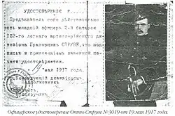 Офицерское удостоверение русского прапорщика Отто Струве. 19 мая 1917 года. Первая мировая война. Кавказский фронт.