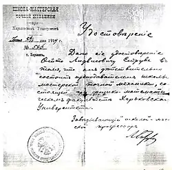 Харьковское университетское удостоверение Отто Струве, 1919 год