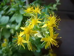 Соцветия прямостоячие, представлены метёлками или рыхлыми щитками. Цветки относительно крупные, заострённые, звездчатые, 5—7-членные, лепестки 4–6 мм в длину, оранжево-жёлтые; чашелистики широкие, неодинаковые, продолговатые, с заострёнными концами; цветоножки короткие. Полный период цветения происходит с середины февраля по апрель[4].