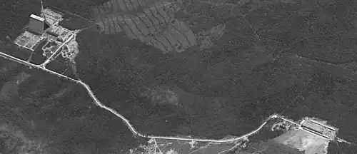Приёмная (слева) и передающая (справа) позиции РЛС «Дунай», разнесённые на 2,5 км.