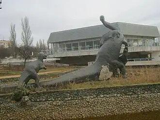 Благодаря скульптору Сергею Лихошерстову в городе Саки в 1932 была установлена скульптурная композиция «Борьба бронтозавра с цератозаврами», ставшая вторым в мире (после скульптуры в Лондоне) и первым в СССР памятником динозавру[14]. Скульптура является символом города, и в 2005 году бронтозавр был изображён на гербе города[15].