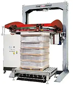 Во время обмотки груз находится неподвижным. Рулон с пленкой перемещается по вращающейся вокруг палета с грузом руке. Преимущества данного метода, что груз находится неподвижным во время обмотки. Для позиционирования ручной или самоходной тележкой нет необходимости в пандусе или в углублении основания в пол. Минус данного оборудования — бо̀льшая стоимость и большие размеры.