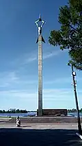 Обелиск из металла высотой около 18 метров на вершине повторяет пятиконечную звезду. На высоте 3,5 м установлена мемориальная доска, выполненная из металла, на которой надпись — «40 лет Победы над фашистской Германией 1941—1945». Обелиск находится в центре квадратной площадки, выложенной цветной мозаикой. | Бульвар Победы |