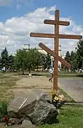 50°10′57″ с. ш. 26°32′57″ в. д. Православный крест установлен на земляной насыпи