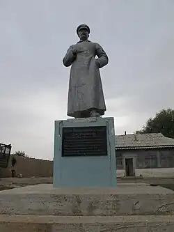 - ↑ Евгений Дробязко. Единственный в стране монумент Иосифу Сталину сохранился в Южном Казахстане Архивная копия от 22 декабря 2015 на Wayback Machine // www.ktk.kz
