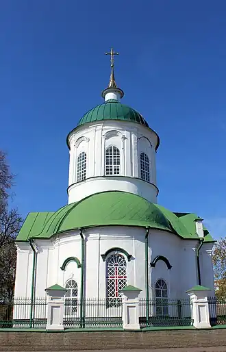 Новый каменный трехдильный одноглавый храм был возведён по типу Богословской церкви (1751) и соборного храма Введенского женского монастыря (1778) города Нежина. Северный и южный фасады церкви выступали в виде небольших раскреповок, восточный и западный — в виде апсид. Углы их, как и стены апсиды, были выделены пилястрами с раскрепованным над ними карнизом. Фасады были увенчаны треугольными фронтонами с овальными окнами и плоскими нишами в тимпанах. Оконные проемы — полуциркульные, обрамлены плоскими выступами кладки с полукруглыми карнизами поверху. Барабан главы цилиндрический снаружи и восьмигранный изнутри. В нем размещались полуциркульные окна. В простенках между окнами, по фасадам барабана — спаренные пилястры с раскрепованным над ними карнизом. Перекрыт барабан кирпичным куполом с железной купольной кровлей, увенчанным декоративною главкою.