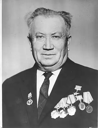В 1946 году организовал в своём родном селе колхоз имени Ленина и стал его председателем.