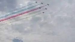 - Полёт групп многоцелевых истребителей МиГ-29 под командованием полковника Заура Рустамова;