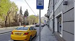 В Москве распространены специальные стоянки легкового такси. Ими могут пользоваться только легальные таксомоторные перевозчики. При этом на транспортных средствах обязательно должны быть опознавательный фонарь оранжевого цвета, цветографическая схема легкового такси и другая информация, требуемая федеральным законодательством.[34] Места стоянки легкового такси обозначаются дорожным знаком 5.18 «Место стоянки легковых такси» или дорожной разметкой 1.17 «Место остановки маршрутных транспортных средств и стоянки такси» в соответствии с Правилами дорожного движения России. Штраф за парковку на стоянках такси для всех иных категорий транспортных средств составляет 3000 рублей с последующей платной эвакуацией такого транспортного средства.[35][36]