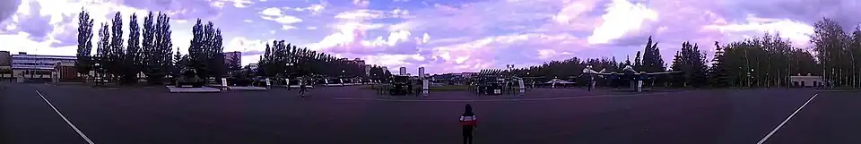 В парке находится выставка военной техники современности и времён Великой Отечественной войны, расположенной под открытым небом — танки от Т-34-85 до Т-80, БРДМ, БТР-1, БТР-2, БМД, противотанковые артиллерийские орудия, гаубицы, ПТ-САУ СУ-152 «Зверобой», «Катюша», «Полуторка», самолёты: Пе-2, МиГ-17, Aero L-29 Delfin, По-2, Су-7, МиГ-27, вертолёты Ми-8П, Ми-2, тактический ракетный комплекс «Луна-М».
