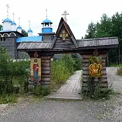 В 1991 году перед «Музеем Ермака» по инициативе основателя парка Леонарда Постникова был установлен памятный знак в честь похода Ермака в Сибирь. В основании стелы с образом Святого Георгия, покровителем воинов, лежит земля из Нижне-Чусовских городков, откуда Ермак с дружиной отправился на покорение сибирских земель, и из Тобольска, где Ермак погиб. В 1992 году земля была освящена.