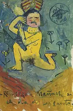 «Певица кабаре» — картина, имеющая одну интересную особенность. На её оборотной стороне Пикассо изобразил своего друга Педро Манача в жёлтом костюме эльфа и в полосатом тюрбане на голове. В 1984 году холст приобрёл миллиардер Билл Кох за 1,4 миллиона фунтов стерлингов. Однако он не обратил внимания на карикатуру. В 2000 году эксперт по консервации, работавший над картиной, обнаружил это изображение. Тогда Кох придумал оригинальный способ показать двухстороннюю картину в своем особняке. В стене сделали проём, в который вставили холст, и два изображения можно было наблюдать из разных комнат[2].