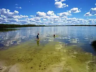 Озеро имеет близкую к овальной форму. Располагается на высоте 91,6 м над уровнем моря[3]. Берега озера низкие, поросшие смешанным лесом, на юге и юго-востоке — луговой растительностью. Дно песчаное, пологое. Площадь водоёма составляет 0,44 км²[5]. Длина озера 0,92 км, максимальная ширина составляет 0,63 км[4].