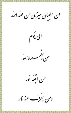- ↑ Seyyed Ali Mohmmed, dit le Bab le Beyan Persan, Traduit du Persan par A.- L.- M. Nicolas (Consul de France a Taruris. Tome Premier, Paris. 1911. Librairie Paul Geuthner, 68, Rue Mazarine.