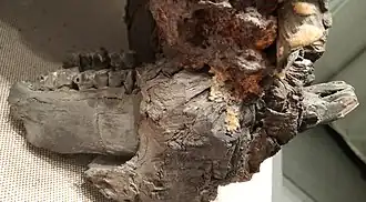 В 1975 году в ходе раскопок на Старокиевской горе был найден фундамент сооружения. Рыбаков считал это сооружение местом расположения идолов киевского пантеона, утверждая, что в нём «чётко обозначены пять выступов разного размера: один большой — в середине, два меньших — по бокам и два совсем маленьких — около боковых выступов…». Но дальнейшие исследователи критически отнеслись к заявлению Рыбакова[171]. Само капище археологами найдено не было[172], как и любые свидетельства человеческих жертвоприношений в Киеве[173].