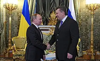 - ↑ Янукович: обращение к Путину в 2014 году было таким же, как к ФРГ, Франции и Польше. ТАСС (2 марта 2018). Дата обращения: 3 марта 2018. Архивировано 4 марта 2018 года.
