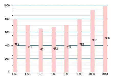 Население коммуны в 2011 году составляло 971 человек[6], в 2012 году — 978 человек[7], а в 2013-м — 986 человек[5].
