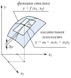 Зная коэффициенты модели , можно с определённой точностью предсказывать значение функции (а значит и поведение системы) в окрестностях точки . В определении значений коэффициентов и состоит цель эксперимента.