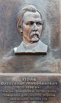 - 17 июля 1891 года возле Гданцевского чугунолитейного завода был установлен бронзовый бюст Александру Полю[3] в присутствии директора Горного департамента. Автор — скульптор Эдуардс. Бюст был установлен на монолите криворожской руды, имевшей в основе местный кварцит и построен на средства Общества криворожских железных руд, которое первым начало разработку местных железных руд. Надпись на постаменте гласила: «Полезной деятельности А. Н. Поля в Кривом Роге 1870—1890 от акционерного Общества Криворожских железных руд»[4];