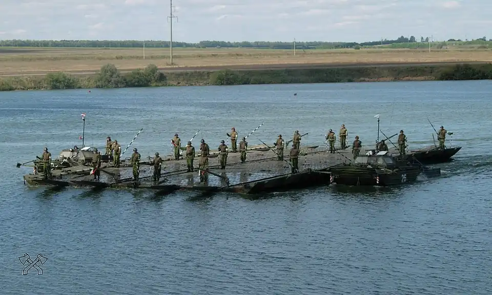 В понтонном отделении — заместитель командира взвода — командир отделения, старший понтонёр, старший водитель, три понтонёра и четыре водителя-понтонёра.