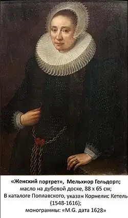 - «Портрет дамы» Мельхиор Гелдорп — дуб 88 х 65 см; (В кат. Поплавского: автор Корнелис Кетель (1548—1616); монограммы: «M.G. дата 1628»), была вывезена из Варшавы в 1943 г., по каталогу «Военные потери» № 3620. Картина была перепродана в 2016 г. на аукционе в Нью-Йорке, США. Возвращена в Национальный музей 2018 г.