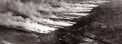 22 апреля 1915 года во время второй битвы при Ипре немцы впервые успешно применили в больших масштабах отравляющий газ — газообразный хлор. 25 сентября британцы ответили аналогичной атакой в битве при Лосе. Началась борьба воюющих государств за всё более эффективные боевые отравляющие вещества.