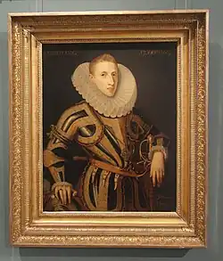 На картине изображён молодой человек в парадных рыцарских доспехах с воротником-горгерой. Правой рукой он опирается на шлем, левой — на эфес шпаги. На его груди висит знак ордена Алькантары. Вверху надпись на латинском языке с использованием лигатур: DI DAC VMAO / ÆTATIS SVÆ. 17. ANNO. 1605. (В возрасте 17 лет). Справа внизу имеется подпись художника с использованием лигатур, диграфов и аббревиатур, а также дата; в развёрнутом виде вся надпись читается как Joanes Pantoja de la Crus. Faciebat 1605. В правом нижнем углу красной краской нанесены цифры 4172, они соответствуют номеру картины по рукописному генеральному каталогу Эрмитажа, начатому в 1797 году.