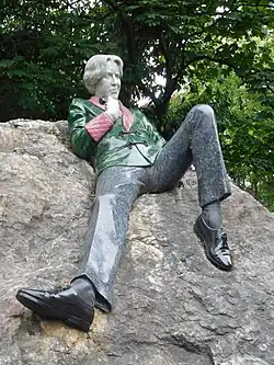 Памятник Оскару Уайльду с лицом, искажённым усмешкой. Аллюзия на Дориана Грея. Дублин