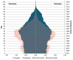 По данным переписи 2011 года, в Люксембурге живут 82 363 португальца, или 16,1% от общей численности населения. Начиная с 1970 года как абсолютное число португальцев, так и их доля в населении увеличивались. Средний возраст португальцев (32,9 лет) значительно ниже, чем средний по стране (38,7 лет). Возраст 65 лет и старше имеют 3011 человек португальской национальности, проживающих в Люксембурге, что составляет лишь 3,7% от их общего количества (против 14% по стране в целом). 70,0% португальцев, проживающих в Люксембурге, родились в Португалии и 24,4% родились в Люксембурге. В абсолютном выражении, большинство португальцев (13 567) живет в городе Люксембург. Однако их доля максимальна в городе Ларошетт (45,2% населения города). В среднем, португальцы имеют более низкий уровень образования, чем в среднем по стране. Однако, как и для населения в целом, наблюдается рост уровня образования: более молодые когорты лучше образованы, чем более старших возрастных групп. Тем не менее, в возрастной группе от 25 до 34 лет 50% португальцев имеют низкий уровень образования (начальное и не более 3 лет среднего), в то время как в общей популяции соответствующий процент составляет для этой возрастной группе составляет 20%. 53% португальцев, проживающих в Люксембурге на момент переписи 2011 года, иммигрировали в Великое Герцогство в период между 1995 и 2011 гг.[6]