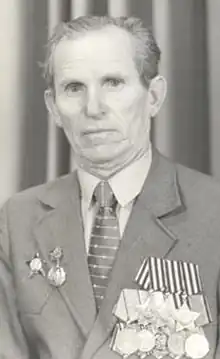 - ↑ Награждён Указом Президиума Верховного Совета СССР от 09.05.1945 об учреждении медали «За победу над Германией в Великой Отечественной войне 1941—1945 гг»