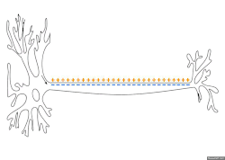Схематичная иллюстрация передачи нервного импульса вдоль аксона нейрона