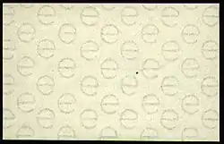 Ирландские почтовые марки с надпечаткой поставлялись лондонской типографией с водяными знаками в виде королевского шифра Георга V. Первым ирландским водяным знаком стал стилизованный рисунок двух перекрывающих друг друга букв «s» и «e», составляющих водяной знак «se», который обозначает название страны «Saorstat Éireann» («Ирландское Свободное государство»). Этот водяной знак вышел из употребления примерно в 1940 году, когда название страны изменилось на «Éire» («Ирландия»): при этом стали использовать бумагу с водяным знаком в виде буквы «e», что означает «Éire»[20]. На почтовых марках того периода может присутствовать водяной знак в любом из нескольких разных инвертированных или повёрнутых положений в зависимости от того, какой стороной бумага подавалась в печатную машину[30].