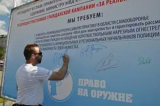 - ↑ Петиция от сторонников легализации оружия. mp2011.ru. Дата обращения: 12 января 2019. Архивировано 5 февраля 2017 года.