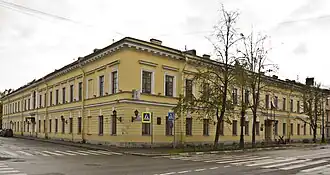 Здание построено в 1834—1836 годах по проекту А. П. Брюллова и Э. Х. Анерта как административное здание[1]. Изначальный проект разработал в 1833 году Ф. И. Трапезников, но Николай I не утвердил его. Анерт разработал три проекта, но Николай I приказал Брюллову разработать к одному из них другой фасад; тот использовал фасад первого проекта Анерта, упростив его внешний вид, и планировку третьего проекта, после чего итоговый проект был утверждён 24 января 1834 года[2].